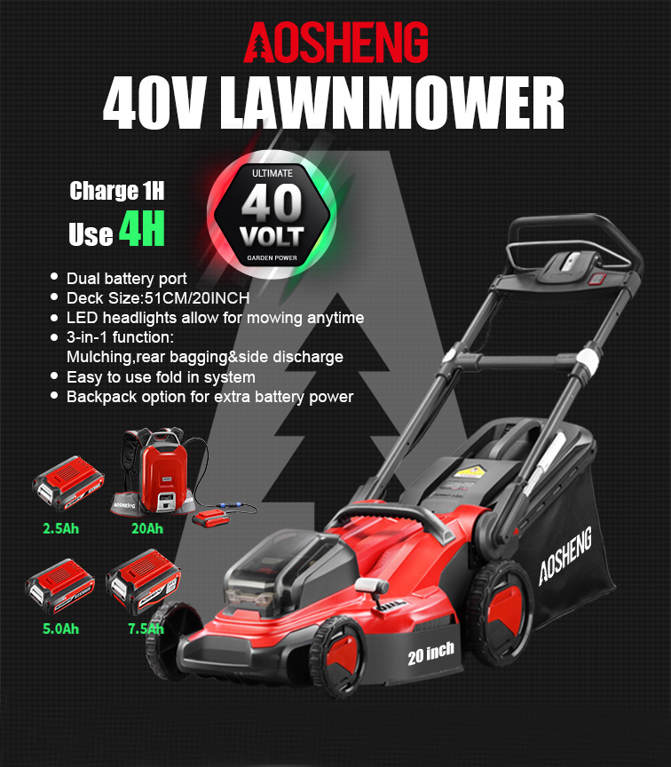 | 04PUGNA COMPASTERIUM In altilium sarcina utitur Samsung gravida 18650-25R Cum plures tutelae munera Stabilis effectus, tranquillus Locum AOSHENG 40V altilium Pack Dual altilium portum potest switch ad tergum altilium ut extendere opus temporis |